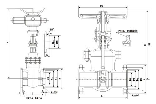 真空闸阀主要尺寸/mm Main dimensions NKZ41H-64 NKZ941Y-64I