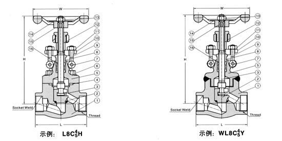 锻钢截止阀有三种盖设计形式。第一种是螺栓式阀盖,按这种设计形式设计的阀门,其阀体与阀盖用螺栓螺母连接,缠绕式垫片(316夹柔性石墨制造)密封。客户有特殊要求时也可采用金属环连接。第二种设计形式是焊接式阀盖,按这种设计形式的阀门,其阀体与阀盖用螺纹连接,全焊密封。客户有特殊要求时也可采用全焊透连接。第三种是压力自紧式阀盖,按这种设计形式设计的阀门,其阀体与阀盖用螺纹连接,内压自密环密封。